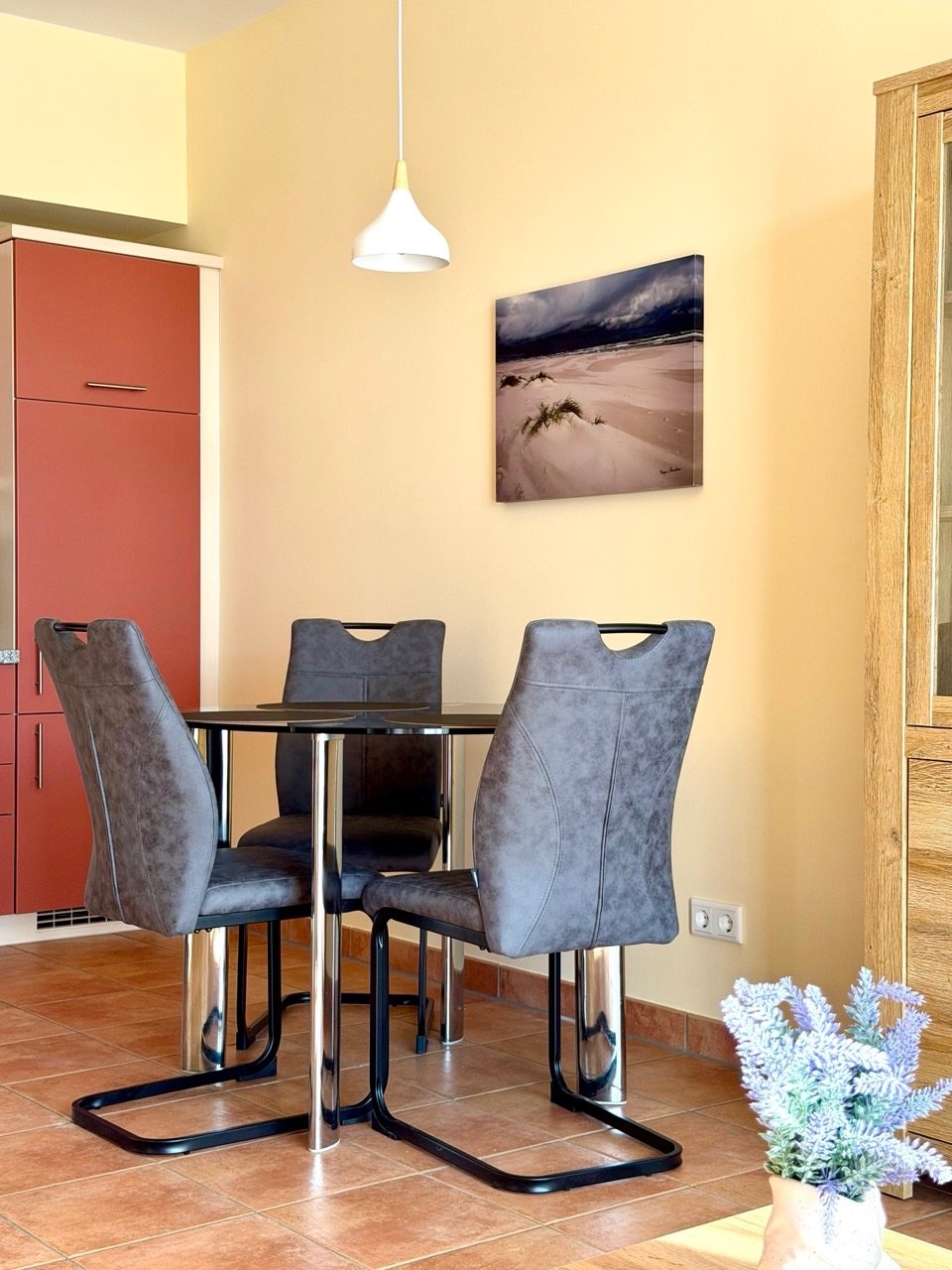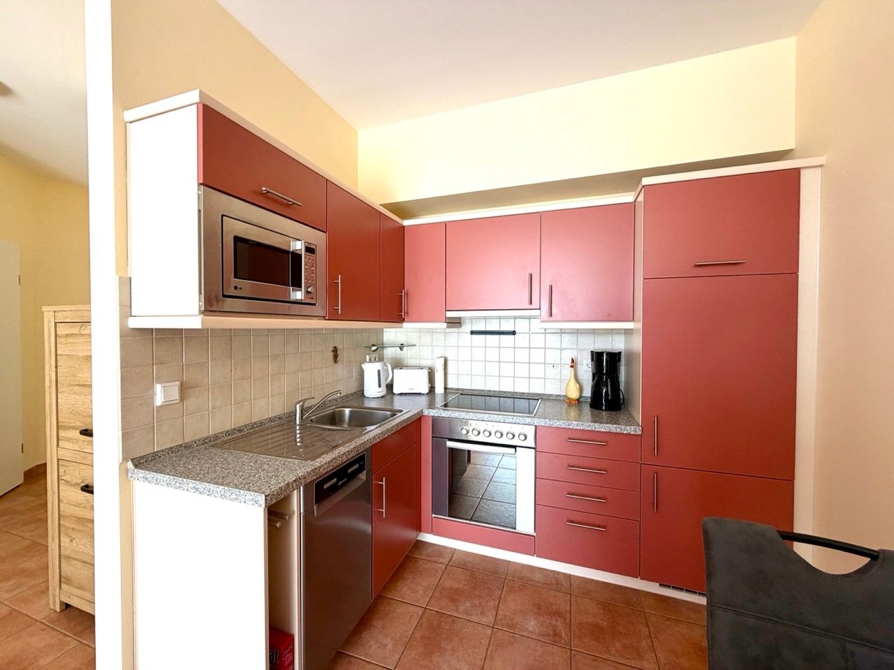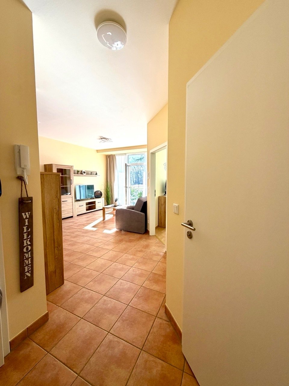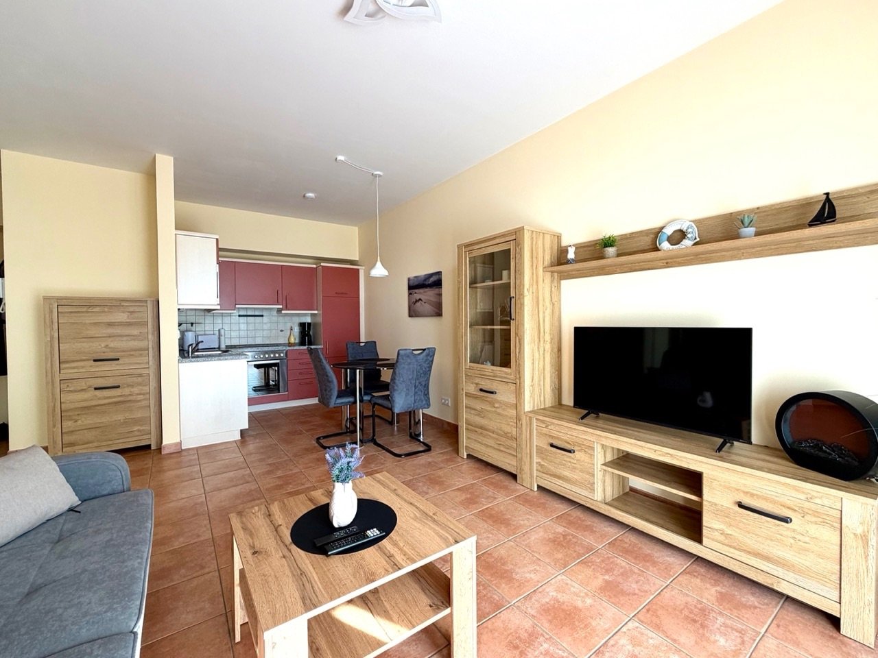 Die geschmackvoll eingerichtete Wohnung überzeugt mit einem großzügigen, lichtdurchfluteten Wohnbereich, der zum Verweilen einlädt. Die moderne Ausstattung und das durchdachte Raumkonzept schaffen eine angenehme Wohlfühlatmosphäre perfekt für Paare, Familien oder Freunde.