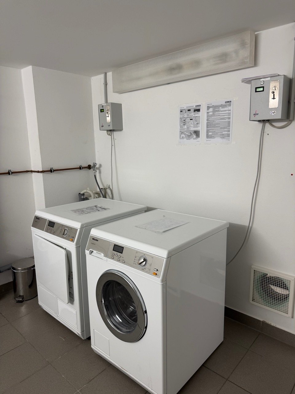 Im Gemeinschaftsraum stehen Ihnen Waschmaschinen und Trockner zur Verfügung. Ein eigener kostenfreier Parkplatz und ein Fahrradunterstand befinden sich direkt am Haus.